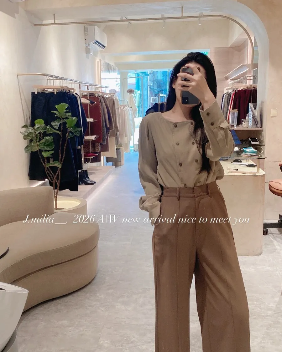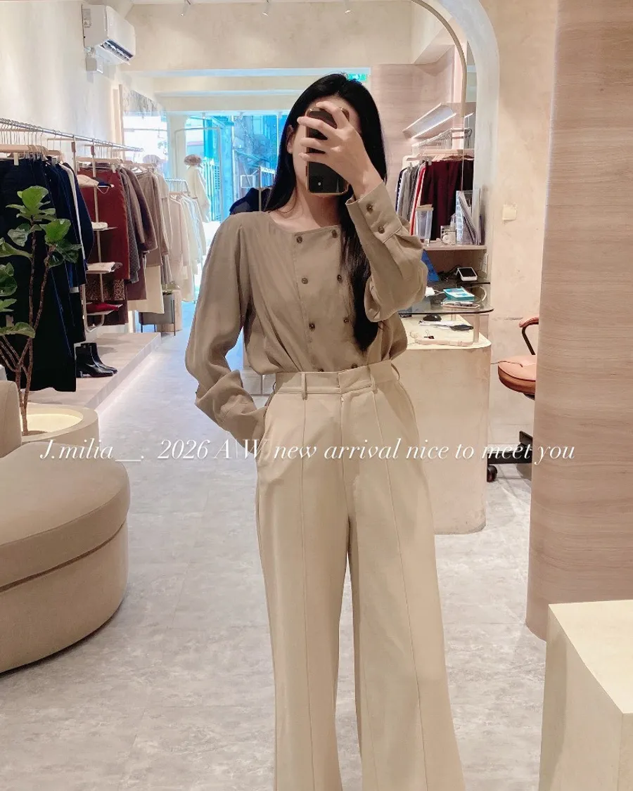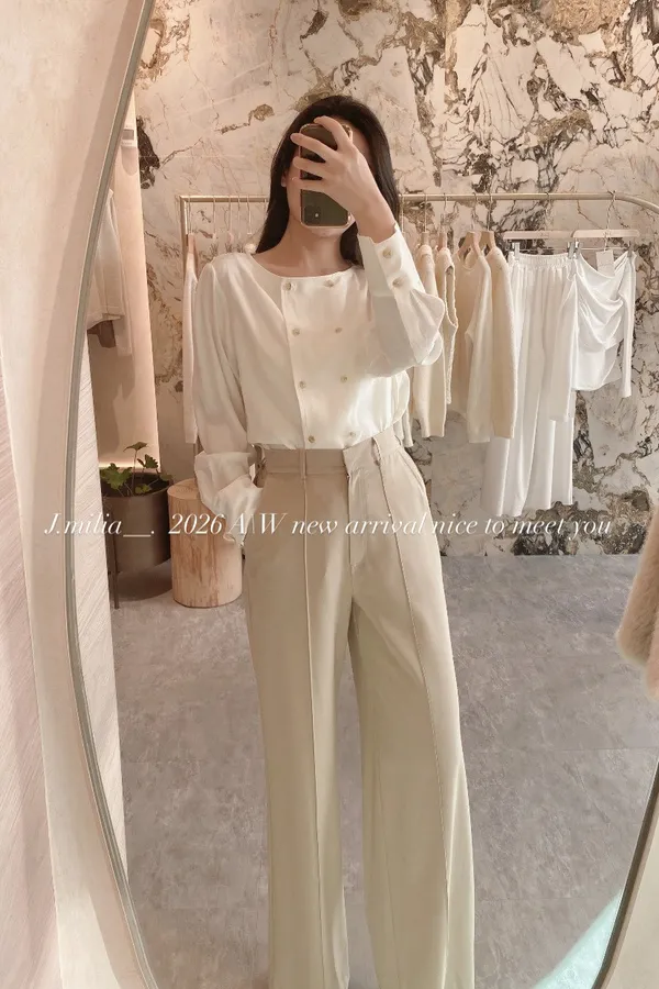T1224雙排釦薄絨面圓領上衣